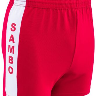 Облегающие трикотажные шорты, с надписью по бокам SAMBO на белом трикотаже.